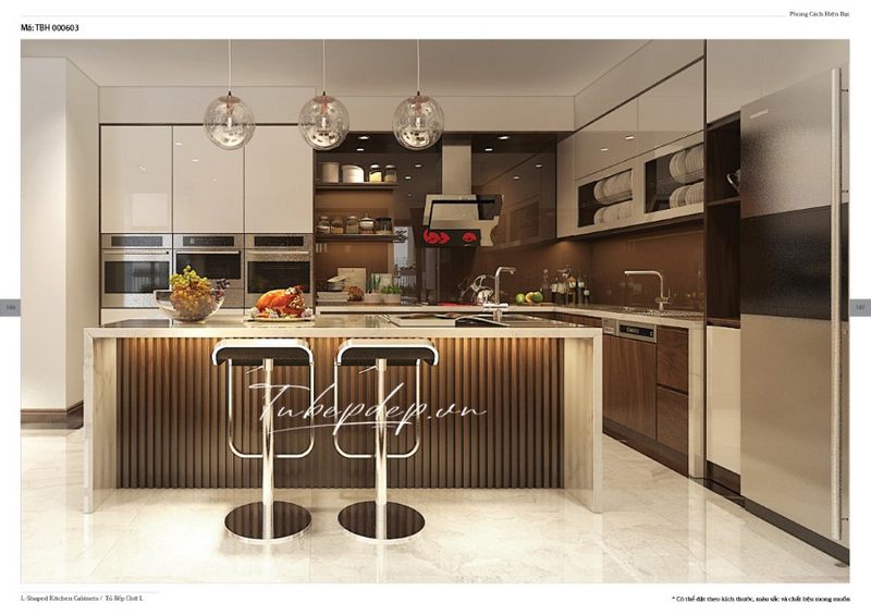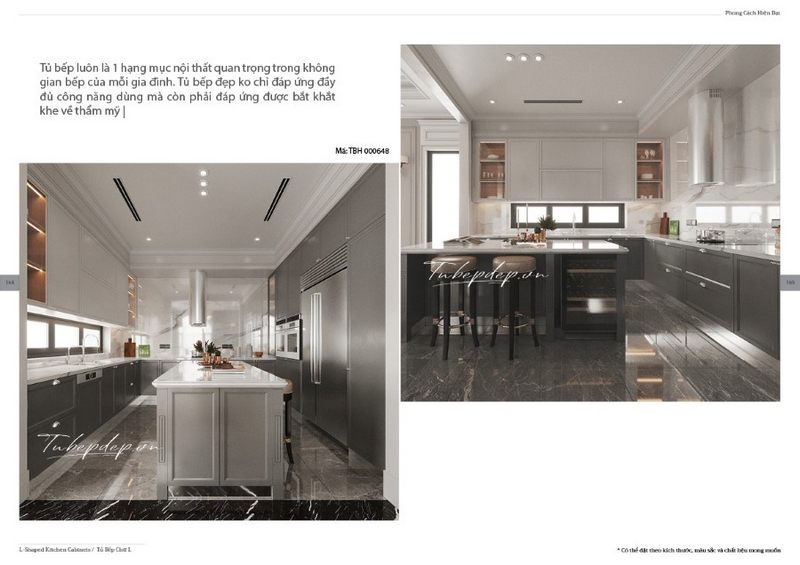Mẫu tủ bếp đảo phong cách đương đại đẹp, sang trọng cho biệt thự, nhà phố.