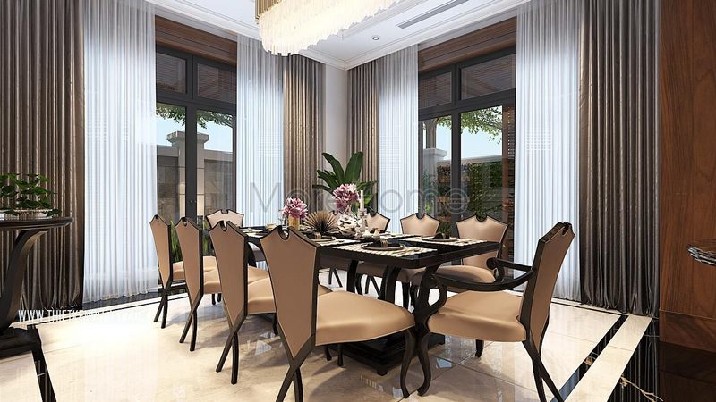 Thiết kế nội thất khu phòng ăn kết nối với không gian phòng bếp mở hiện đại