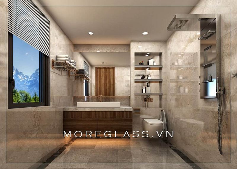 Sử dụng vách kính ngăn hiện đại cho phòng tắm biệt thự, nhà phố được ưu tiên lựa chọn và trở thành xu hướng của thời đại mới.