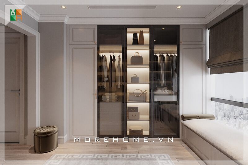 Cùng chiêm ngưỡng mẫu tủ quần áo gỗ phong cách tân cổ điển màu trắng sang trọng đến từ KTS Morehome