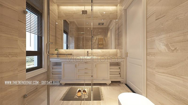 Phòng tắm nhà phố, biệt thự trang trí nội thất với phong cách tân cổ điển đem tới đời sống thoải mái, thư giãn sau những giờ làm việc mệt mỏi.